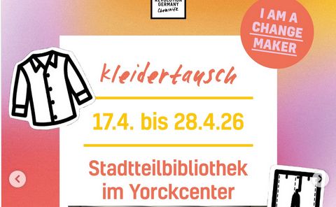 Von Freitag den 17.04. bis Dienstag, den 28.04. findet in unserer Stadtteilbibliothek im Yorck-Center ein Kleidertausch statt. Dazu gibt es eine Medienpräsentation zu den Themen Nachhaltigkeit, Bekleidung und Fair Fashion.